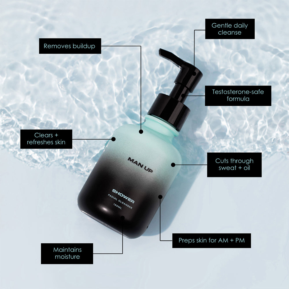 Your gentle facial cleanser for the shower. Designed to cleanse, refresh, and hydrate without stripping your skin. This gentle yet effective formula washes away impurities, prevents breakouts, and fights acne, leaving your skin feeling completely clean and balanced.